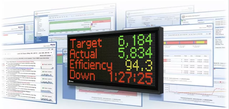 - Motywacja pracowników produkcji przez wyświetlenie celów do osiągnięcia.